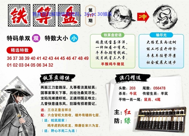 309期:四门中特▮1.2.3.5门▮开:鼠06准